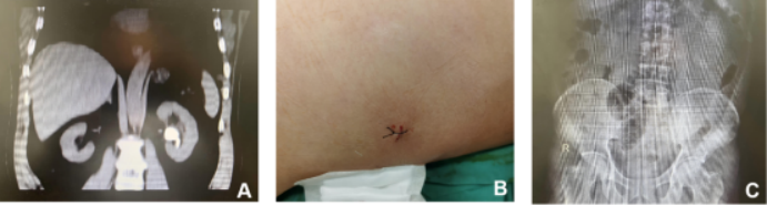 52岁李先生,因“左侧腰部疼痛半月”入院,泌尿系CT提示左肾多发结石,较大者约22*10*15mm;科室主任梁国标带领团队为患者制定完全无管化日间PCNL手术方案。由陈书练主任医师主刀,术中精准穿刺定位,无明显出血,可视范围内结石全部清除,超声检查无明显结石残留,退鞘后缝合皮肤切口,患者术后恢复良好,第一天复查腹部平片未见结石残留,顺利出院。这是泌尿外科开展的第九例完全无管化经皮肾镜手术,第五例完全无管化日间经皮肾镜手术。科室还在持续开展完全无管化的日间输尿管软镜手术。