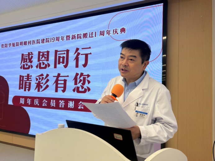 贵阳华厦阳明眼科医院院长官苍宇表示,自 2006 年建院以来,贵阳华厦阳明眼科医院已走过十九载光辉历程。十九年来,医院始终坚守医疗初心,从合群路到百花山路再到延安西路新院区,每一次搬迁都是服务升级的新起点,每一次成长都离不开患者的信任与支持。新院搬迁一年来,医院凭借更舒适的就医环境、更先进的诊疗设备、更专业的医疗团队,持续深耕眼科医疗领域,不断提升医疗技术与服务水平,将专业的眼健康服务送到群众身边,书写眼科医疗事业发展的新篇章。