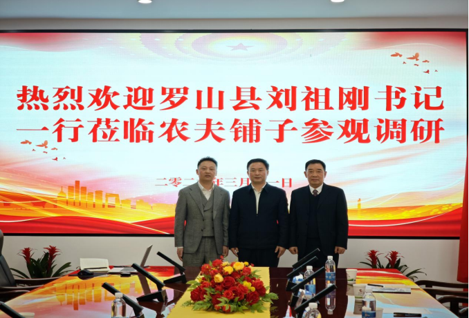 2026年3月11日,河南省信阳市罗山县委书记刘祖刚率队赴北京农夫铺子发展集团总部考察交流,实地探访企业数智化创新成果,共商数字技术赋能实体经济、助力县域产业升级与智慧康养发展大计。农夫铺子集团董事会主席兼CEO袁道红携核心管理层全程陪同,双方开展深度座谈,达成多项合作共识。