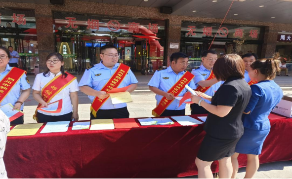 《中华英才》半月刊网山西讯(姜存辉 李世鑫)为贯彻落实上级关于扶持个体工商户发展的决策部署,充分动员各方面力量,提升个体工商户获得感、满意度。7月17日,朔城区市场监管局党组书记、局长杜超、副局长齐永胜、李平和中城管理所全体人员在美联购物中心广场开展“个体工商户服务月”政策宣传活动。