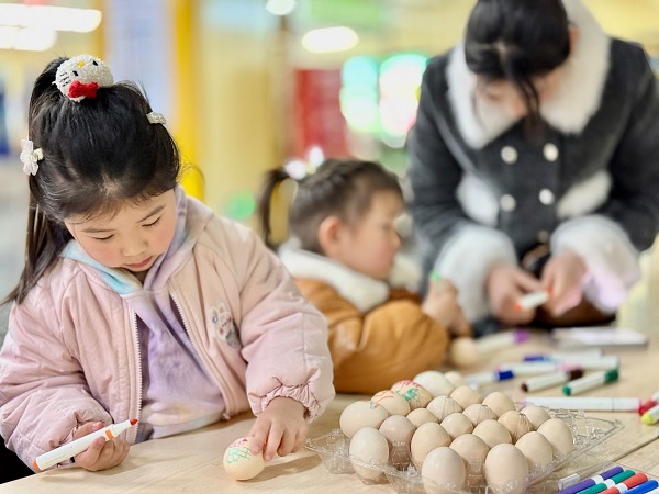 活动现场,工作人员备好鸡蛋、画笔等材料,细致讲解“春分立蛋”民俗渊源、画蛋技巧与安全事项。乘客们踊跃参与,挥笔创作,将春日景致绘于蛋壳,把美好期许藏于蛋中,现场洋溢着欢乐的春日氛围。