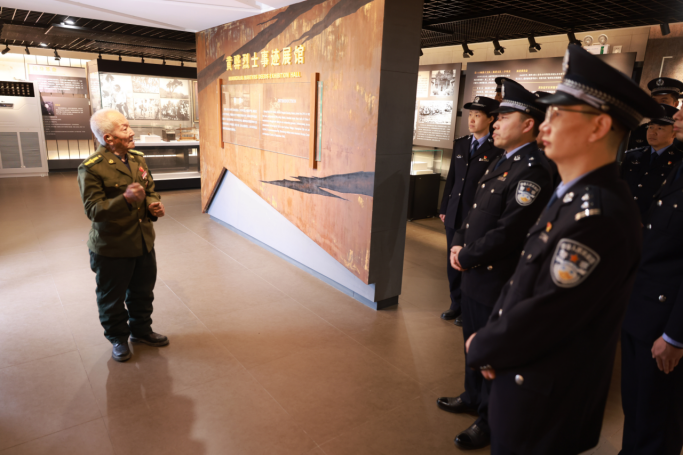 随后,在讲解员的引导下,民警们参观了“壮志凌云”“戎马生涯”“名耀渤海”“英魂永存”四个单元的展陈内容。一幅幅珍贵的历史图片、一件件斑驳的革命文物、一段段翔实的文字解说,全景式再现了黄骅烈士短暂而光辉的一生。民警们驻足凝视,认真聆听,不时交流感悟。大家纷纷表示,革命先烈用鲜血和生命换来了今天的和平与繁荣,作为新时代移民管理警察,要以革命先烈为榜样,传承红色基因,赓续精神血脉,将缅怀之情转化为履职尽责的强大动力,以实际行动守护国门口岸安全稳定。