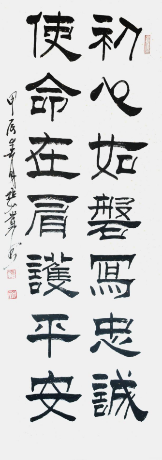 2012.本人书法作品被香港警察学院,澳门司法警察局,澳门海关,澳门保安部队高等学校收藏,十年来为一百多名警察艺术家制印,二十多年来为二百九十八位共和国将军制印,完成本人制定的(百名将军,百名警察)篆刻艺术铭章意愿。