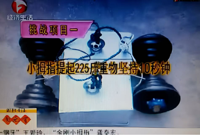 1. 所获荣誉:2013年CCTV-1打破吉尼斯世界纪录,央视称其为“金刚小拇指”。2025年打破五项世界纪录。2025年1月CCTV《星光达人秀》优秀演员。2025年5月中国武术家联合会中国武术名家。2025年7月国家大剧院“艺生活”艺术体验营优秀指导教师。2025年8月央视中学生频道《时代强国》时代影响力人物。2025年9月国际艺术外交联盟中德友好交流大使。2025年9月中国武术协会中华武术名家。2025年10月芜湖市第十五届运动会芜湖体育运动达人。2025年11月中国武术散打协会中国武林百杰。2025年12月清北工匠研究院客座教授(武术领域)。2.主要成就(五项世界纪录):①2013年在CCTV-1《吉尼斯中国之夜》节目中,龚泰宏以左手小拇指提起106.1公斤哑铃片,打破吉尼斯世界纪录,并在2025年将世界纪录提升到240.53公斤。2013年在安徽电视台《奇人绝技大拜年》与《奇绝技闹元宵》节目中,龚泰宏挑战了“左手小拇指提225斤重物坚持10秒”及“右手小拇指提225斤重物行走20米”两项绝技。2014年安徽电视台百姓春晚表演右手小拇指提252斤。2016年CCTV 3《综艺盛典》右手无名指提起245斤坚持了10秒,中指提250斤坚持10秒。2018年在天津卫视单指提273斤重物。②2025年10月8日在南京鼓楼区的挑战现场,他用右手中指提起360.5斤重物并坚持了8秒,创造了“世界上用一根手指提起最重物体”的世界纪录。③2025年9月23日,在中国上海举办的“德国第十任总统克里斯蒂安·武尔夫欢迎晚宴”期间,龚泰宏成功挑战了“用一根大拇指提起289.6斤物体”的世界纪录。挑战规则:参与手指仅限于大拇指,挑战者可用任何一根大拇指进行挑战,需保持提物高度在10厘米以上持续至少5秒。④在2025年11月15日,于中国北京举办的摩尔多瓦经贸投资与葡萄酒品鉴论坛活动中,龚泰宏用右手中指成功硬拉起重达206.43公斤的物体,持续时间达到6.65秒,创造了世界上“用单指硬拉200公斤物体持续时间最长”的世界纪录,其最终有效成绩为5.36秒。也刷新了“世界上用一根手指提起最重物体的人”180.25公斤纪录。⑤2025年11月15日,于中国北京市举办的摩尔多瓦经贸投资与前蜀酒品鉴论坛活动中,龚泰宏以右手小拇指硬拉重达120.53公斤的物体,行进了25米距离,用时19秒76,创造了“单手小拇指硬拉120公斤物体行走25米用时最短”的世界纪录挑战的具体规则如下:1.挑战者仅限使用小拇指进行挑战,且挑战次数限定为三次。2.挑战中使用的物体重量需达到或超过120公斤,3.当物体离开地面时,计时正式开始。在25米的有效范围内,物体不得触碰地面或被放下,否则视为挑战失败。4.在挑战过程中,除可使用镁粉外,挑战者的手指不得采取任何保护或处理措施。