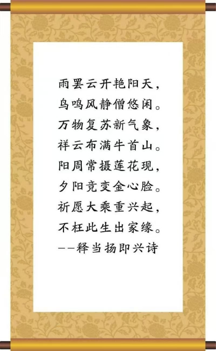 释当扬的特殊之处在于他同时是一位出家人。比丘的身份与口哨艺术之间,在一般人看来或许存在张力,但他将两者圆融地统一于自己的生命之中。他的演奏曲目多关乎人间真情、家国大义、自然之美——《梁祝》的至情至性,《高山流水》的知音之思,《春江花月夜》的自然之趣,《家和万事兴》的美好祝愿,《红梅赞》《祖国你好》的家国情怀。这些作品与佛法的慈悲、感恩、利他精神相呼应。释当扬的愿词表达了他的初衷:“只愿:三塗八难俱离苦,四恩三有尽沾恩。国界安宁兵戈销,风调雨顺民安乐。”他将口哨艺术视为一种祈福的方式,一种利益众生的方便法门。