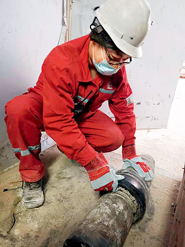 湿滑的泥水沾满了管道和手套,我们根本无法握住管线,往上抬管线使不上力气。此时,我看到雨水淌过徐师傅脸颊上的沟壑,看到他在雨雾中被车灯勾勒的略显佝偻的身形,我心中有一丝震颤。我说道:“徐师傅,我在下面举着管子,你经验丰富,在上面扣卡箍吧。”说罢,我直接躺在水中,用双手双脚举起管道。师傅用手抹了把脸上的雨水,心疼地说:“小秦,坚持不住就说一声。”
