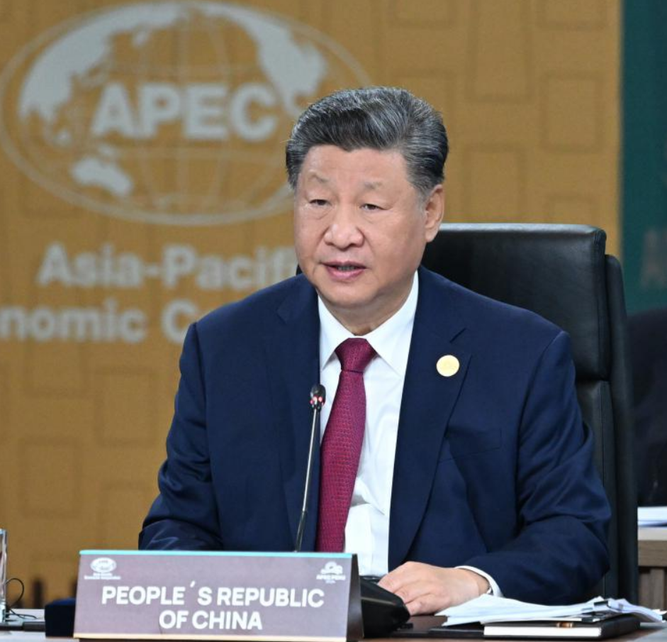 当地时间2024年11月16日上午,亚太经合组织第三十一次领导人非正式会议在秘鲁利马会议中心举行。国家主席习近平出席会议并发表题为《共担时代责任 共促亚太发展》的重要讲话。图片来源:新华社