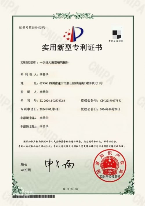 四川李钩针中医院执业医师李昌华,系遂宁市非遗“李氏钩针技术”传承人。他立足家族外治敲击术,研发并获专利的《一种新杵针》,通过“敲击点叩”手法作用于“痛根穴”与传统“天星十二穴”,实现非侵入性调理,将家族外治技术升级。该技术以“非侵入性”“精准定位”为核心创新,适配颈肩腰腿痛康复及亚健康养生,彰显创造性、新颖性、实用性与安全性,是传统外治敲击术创新升级的重要成果。