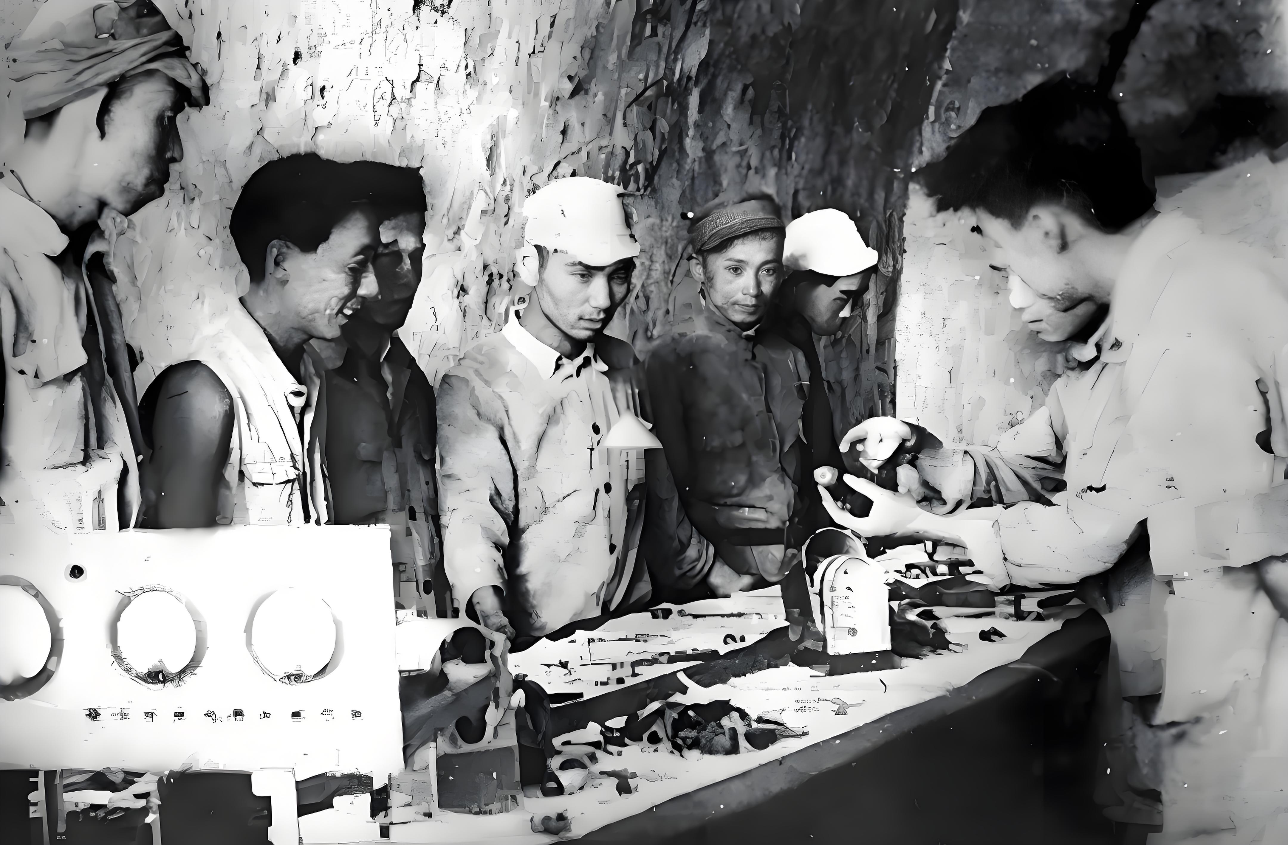 延安通信材料厂的技术人员在窑洞研制通信设备