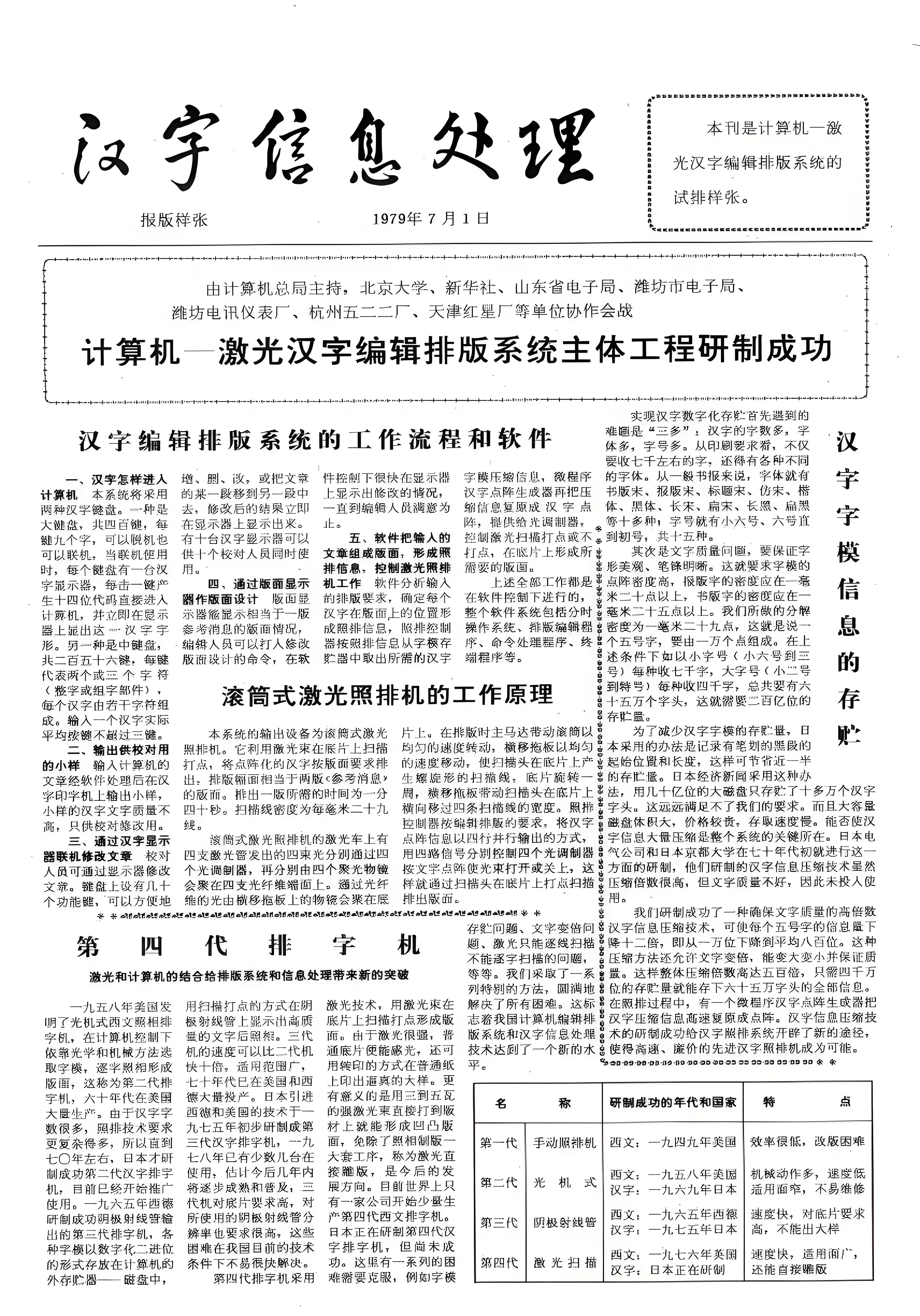 汉字激光照排系统排印的首张报纸样张