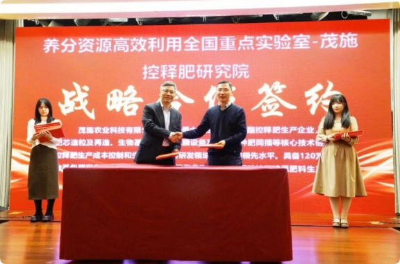 2025年1月16日,茂施与养分资源高效利用全国重点实验室战略签约,并共同发起成立茂施控释肥研究院