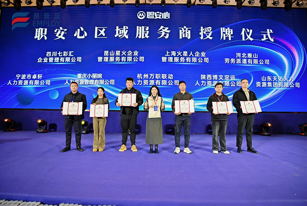 为推动生态共建战略落地,大会现场举行了区域服务商授牌仪式。截至1月19日,首批获得授牌的合作伙伴包括(排名不分先后):四川七彩汇企业管理有限公司、昆山星火企业管理服务有限公司、河北鹿山劳务派遣有限公司、陕西博文定远人力资源有限公司、宁波市卓轩人力资源有限公司、重庆小丽婉人力资源管理有限公司。