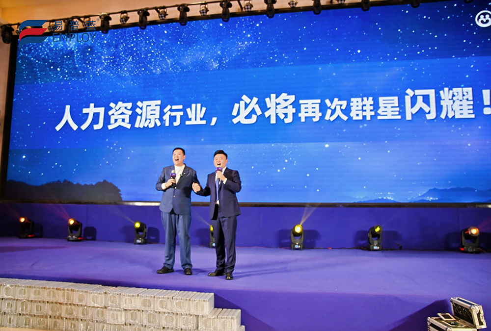 演讲最后,姜聪邀请同为90后的合作伙伴易普蓝创始人段自由一同登台,向全行业发出了充满激情的号召:“人力资源行业必将再次群星闪耀!”这不仅是一句口号,更是新一代人力资源从业者对技术、对行业、对未来的坚定信心。