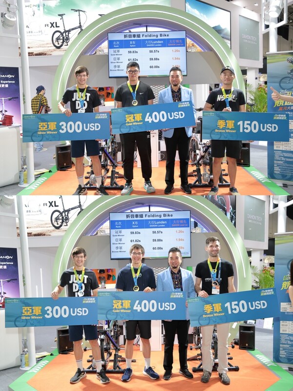 经过为期三天的激烈比拼,"快车道"竞速挑战赛圆满落下帷幕。大行航钛铝公路车Vélodon A4、三折叠自行车LUNDEN在同类车型竞速骑乘时表现亮眼,展现出强大的车身稳定性及出色的骑行效率,令骑士惊叹不已。最终,四大品牌车款分别角逐出冠、亚、季军各一名,韩博士亲临现场为获奖选手颁奖。