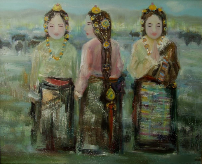 《细雨中的卓玛》萧睿 油画100x80cm2004年