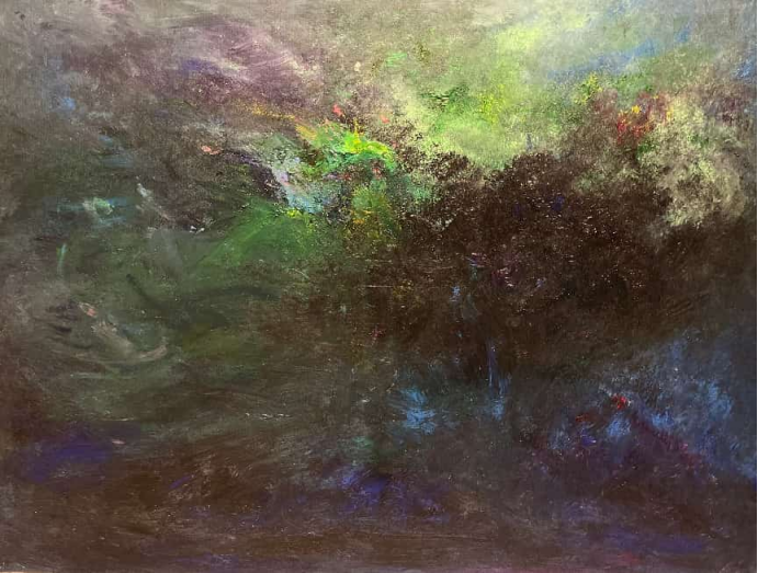 “走过四十载山海,我依然是那个在画布前心跳加速的少女。”王般若如此形容自己。时光予她以沉静的理性,“如月辉梳理潮汐”;亦存感性的温度,“似颜料在光中融化”。
