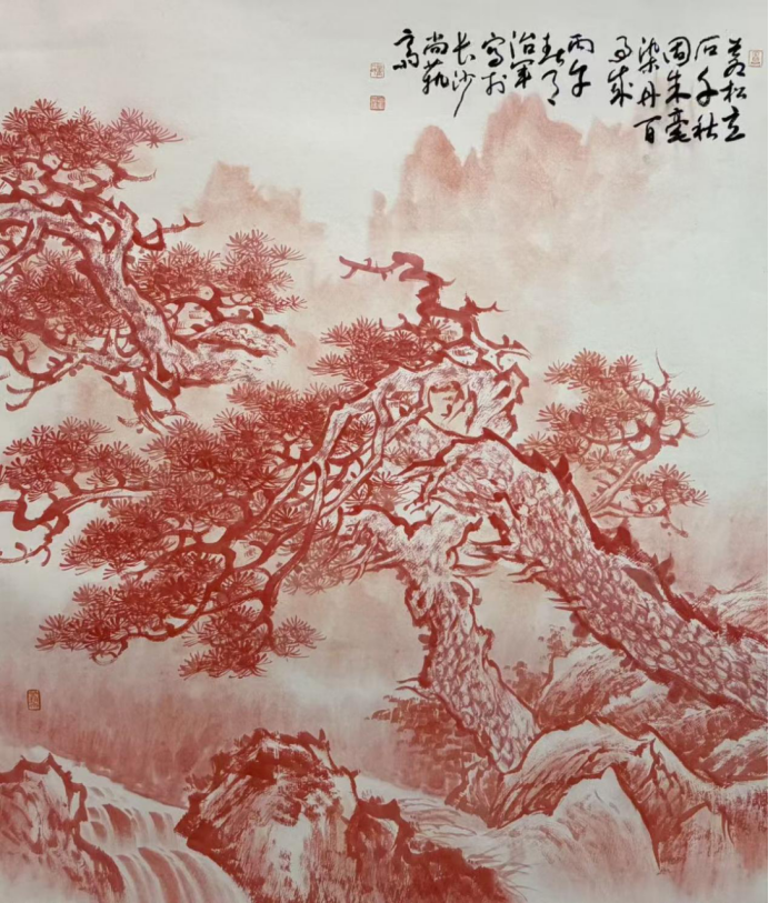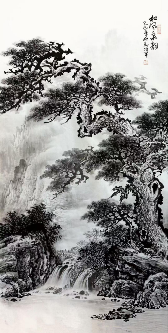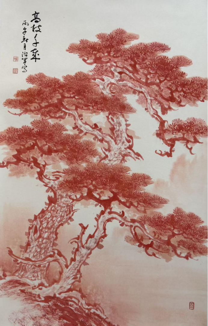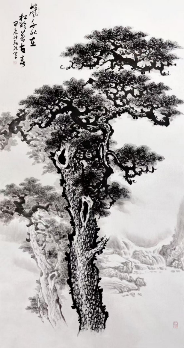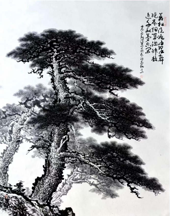 童治军笔下松风苍劲,以铁笔写松骨,以丹心铸艺魂。其作品既承袭传统笔墨精神,又体现时代审美气象,在花鸟画领域尤以画松独树一帜,写尽青松凌风傲骨、浩然正气,将艺术理想与家国情怀融为一体,成为当代中国画坛一位兼具实力与担当的画家。