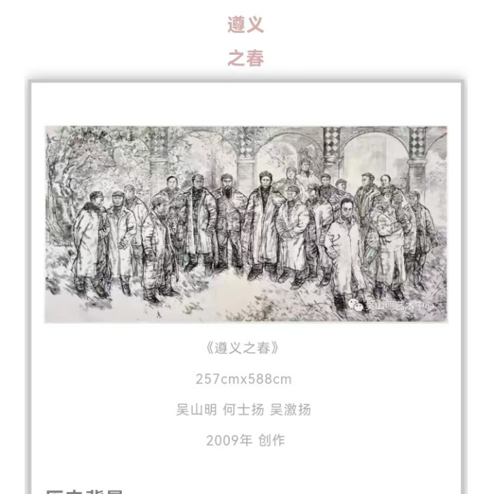 在艺术创作方面,吴山明成果丰硕。他精研意笔线描,出版《意笔线描人物》等专著,完善了中国人物画的技法体系。他耗时七年在龙泉青瓷上进行绘画创作,实现了非遗工艺与水墨艺术的跨界融合,并出版大型画册《水秀山青》。其代表作《巍巍太行》悬挂于人民大会堂,《香格里拉》等作品被永久馆藏;《遵义之春》《大泽聚义》以及黄宾虹、潘天寿、陈毅、习仲勋等人物肖像力作,被中国国家博物馆、中国美术馆、中国军事博物馆等权威机构收藏,作品兼具历史厚度与艺术高度。