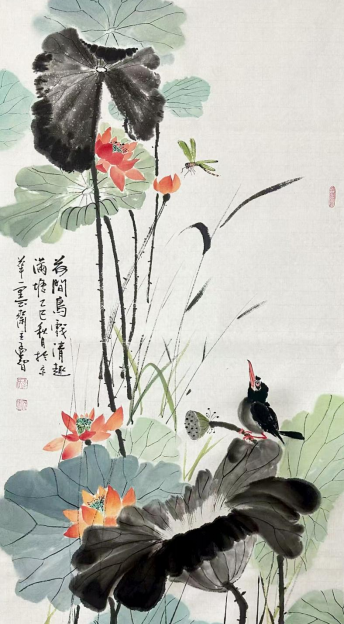 李孟智先生的荷花题材作品,堪称当代文人画中以书入画的典范。其画作不仅延续了中国传统花鸟画的笔墨精神,更以独特的书法性线条和深厚的文化底蕴,赋予荷花以新的艺术生命。观其画作,既能感受到宋元文人画的清雅格调,又能窥见画家对书法艺术的深刻理解与创造性转化。