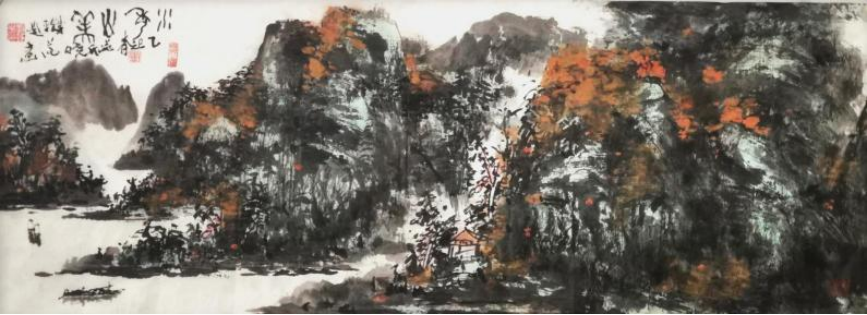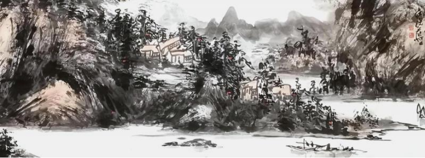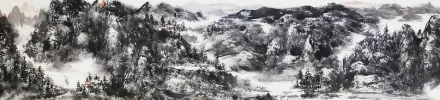 范晓茫先生对真山真水有着深刻的体察和感悟。他喜游历,每年都会抽出大量时间遍访祖国的名山大川、峻林古刹,从大自然中汲取灵感和营养。他的作品中既有江南水乡的灵秀小景,又有北派山水的宏伟大气。其笔墨功底扎实,画作独树一帜。在他的笔下,构图饱满,用笔随意灵动中法度严谨,用墨活跃中体现厚重,意喻深邃,章法新颖,善将水墨彩完美地融合为一体,达到奔放不羁、气势伟岸的效果。代表作品如《青弋江边》《群峰竞秀》《西海牧云》等,整体厚重通透,既有山河之美,也可感田园之趣,让观者仿佛置身于山水之间,感受到大自然的魅力和神韵。