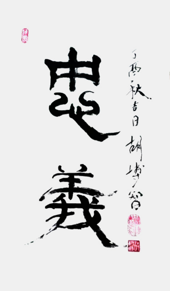 他自幼研习书法、尤喜隶书。他的作品清丽、典雅,被 作为中外新闻社和世界胡氏宗亲联合总会赠送给外国政要和中外友人的文化礼品。曾被赠送给日本前首相鸠山由纪夫、菲律宾的副总统敏耐、巴基斯坦总理谢里夫、尼泊尔前总理贾拉·纳特·卡纳尔、尼泊尔前总理巴特拉姆-巴特拉伊,尼泊尔副总理兼财政部长克里什南·巴哈杜尔·马哈拉、泰国亲王素博·巴莫,赠送给台湾中国国民党荣誉主席吴伯雄、国民党副主席江丙坤、台中市长胡志强等政要。他的书法作品被多国政要、驻华使节、友好人士收藏。