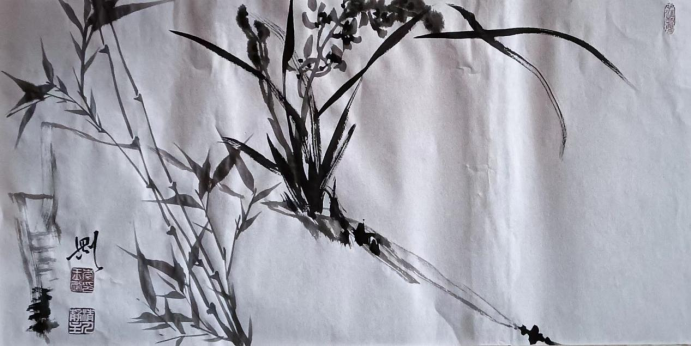 李玉刚的书画创作以兰竹为核心。他笔下的兰花清雅灵动,竹子枝干挺拔、笔墨苍劲,石的点缀更添古朴厚重。他将中医阴阳辩证、气功吐纳与书画虚实相生相融合,笔墨间既有儒家的道德坚守,又有道家的自然观照,形成了“虚实相生、刚柔并济”的独特审美语言。他以“四时不谢之兰,万古不败之石,百节长青之竹,千秋不变之人”为座右铭,将东方美学与人生追求融入每一幅作品。