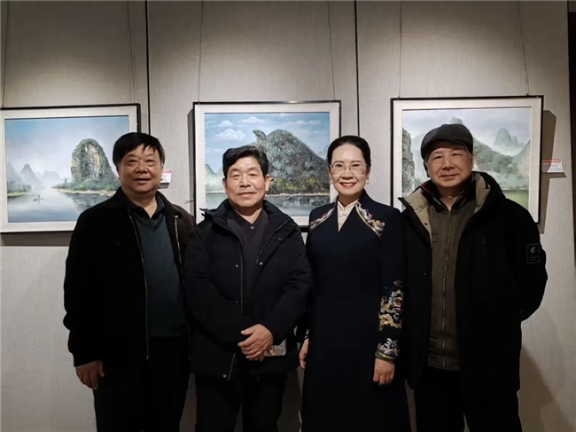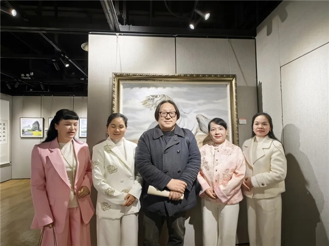 上海长三角书画研究院院长吴一天老师与广西书画家代表陈艺、罗蔚兰、罗丽、罗丹等老师合影留念。