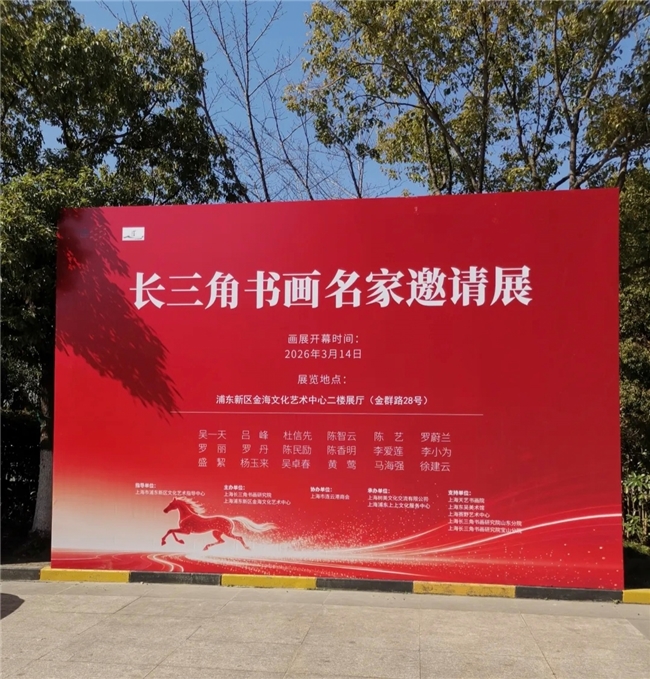 《长三角书画名家邀请展》在上海市浦东新区金群路28号金海文化艺术中心盛大开幕。本次展览将持续展出到3月21日,希望广大书画爱好者前来参观互动。