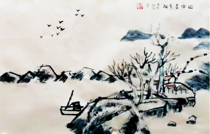 用素描规范水墨淋漓的饱和度、质感、体积感和墨韵,泼色,泼墨。油画规范冷暖对比的饱和度,传统水墨与水色交融的情趣,积色,积墨法。摩尔和霍去病墓雕塑的浑厚感,规范变形夸张,但要含蓄地交代结构。建筑的总体规划和书法的制险理论(上有高低,下有长短,横有展束)作构图,做险破险,前景、中景、远景、附景层次交融,建筑的共享空间,推进为创作意境的共享空间,从线条造型 ,具象造型,意象造型到抽象造型,以形写神,形神兼备。其书画带有书法的笔法,石雕的浑厚感和篆刻的金石味,诗的意韵。纯真质朴妙尽其稚拙钝,于平淡中见真情,气势恢宏、深厚、凝重,意境典雅尽显其自然华滋,雄强大气,讲内涵,讲耐看,展现出时代风范,自成一格,是新时代、新风格、新篇章。既有徐蒋系统的写实 ,又有中国画传统趣味 ,既有毕加索的童真(抽象)梵高的浓烈感情,又有齐白石的大写意。等多种艺术语言写在书画上,形成丰富的内涵。创新了中国书画理论,拓展了中国书画审美,为中国特色社会主义书画事业作出成绩。
