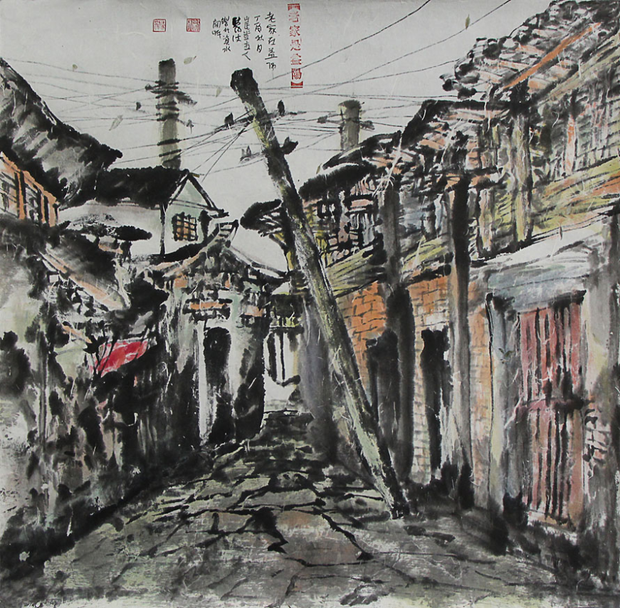 其油画创作,以 “乡土记忆” 为核心脉络,尤擅以写实笔触还原生活本真,兼具写意意境。早年《我下放的地方》系列,以凝练的色彩与温润的笔触,勾勒下乡岁月里的街巷、田畴与烟火,画面中斑驳的土墙、摇曳的炊烟,皆藏着一代人的青春印记,暗合 “艺术源于生活,高于生活” 的创作真谛。而《老家益阳》《洞庭烟波》等作品,更将楚文化的浪漫气质融入具象描绘:洞庭水面的波光以淡蓝与银灰晕染,如屈原笔下 “沅有芷兮澧有兰” 的清婉意境跃然画布;街巷民居的飞檐翘角以厚重笔触刻画,藏着湖湘建筑的古朴气韵,每一处色彩的铺陈、光影的流转,皆非刻意炫技,而是源于对故土的赤诚眷恋,正如清代恽寿平所言 “意超物外,笔补化工”,其油画以意驭笔,让乡土题材超越实景描摹,成为地域文化的视觉载体。版画创作则是欧阳波对楚文化灵动特质的另一番诠释。他以刀代笔,于黑白对比中见章法,于刀痕肌理中传情意。版画上的刀法,既有汉代画像石的雄浑古朴,亦有楚式纹样的婉转灵动 —— 如《知青点记忆》系列,以刚劲的直线勾勒村落轮廓,以柔和的曲线描绘田埂阡陌,黑白交错间,既保留了版画 “刀木相生” 的质感,又传递出乡土生活的静谧与温情。他深谙版画 “以少胜多” 的美学精髓,正如明代董其昌在《画禅室随笔》中所言 “咫尺千里,于方寸中见天地”,于方寸木板之上,镌刻下乡岁月的精神图腾,让每一幅版画都成为承载乡土记忆的精神图腾。