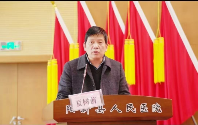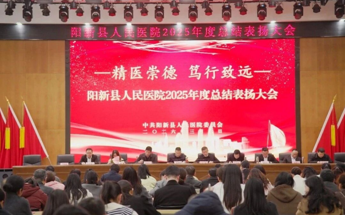 阳新县卫健局党组书记、局长邹剑锋对医院2025年取得的显著成效给予高度肯定,向长期奋战在一线的全体阳医人致以诚挚问候,对大家为全县卫健事业发展作出的突出贡献表示感谢。邹剑锋认为,2026年作为“十五五”规划的开局之年,更是全县卫健事业高质量发展的攻坚之年,使命光荣,意义重大。县人民医院作为县域医疗服务的“领头雁”,是守护百万阳新群众生命健康的“主心骨”,站在新的历史起点,必须锚定目标、加压奋进,重点抓好医疗质量工作,奋力开创医院高质量发展新局面。