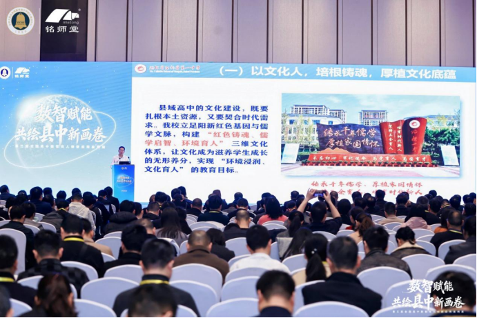 在杭州举行的第三届全国高中数智育人创新应用案例展。阳新一中党委书记方长风受邀在活动现场,面向全国教育行政部门负责人、各普通高中书记校长及教育骨干共计1400余人参会的全国性会务现场,专题报告介绍学校办学历程与振兴成就,学校再度引起全国关注。