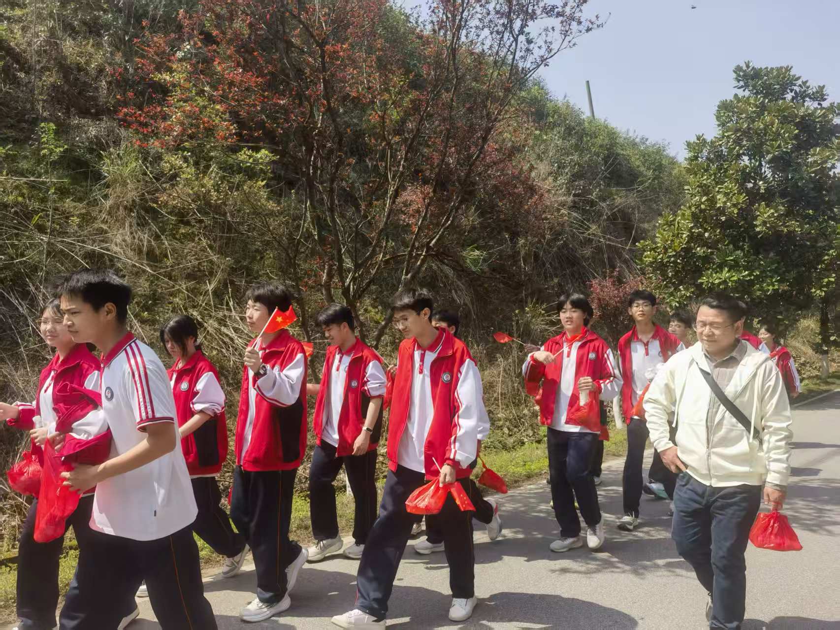 阳新实验高中借助清明节这一传统节日,组织师生重走红军路,主要是深切缅怀革命先烈的牺牲奉献精神,表达对先烈的崇高敬意与深切哀思,也让师生身体“出出汗”,锻炼健康体魄;依托阳新本地红色资源,让学生亲身感受革命先辈的峥嵘岁月,接受红色文化熏陶,增强爱国主义情感和民族自豪感;引导学生将缅怀之情转化为学习动力,立志成才,报效祖国,争做担当民族复兴大任的时代新人。同时,也更进一步丰富学校思政教育形式,打造行走的思政课堂,推动德育工作走深走实,传承学校优良育人传统。
