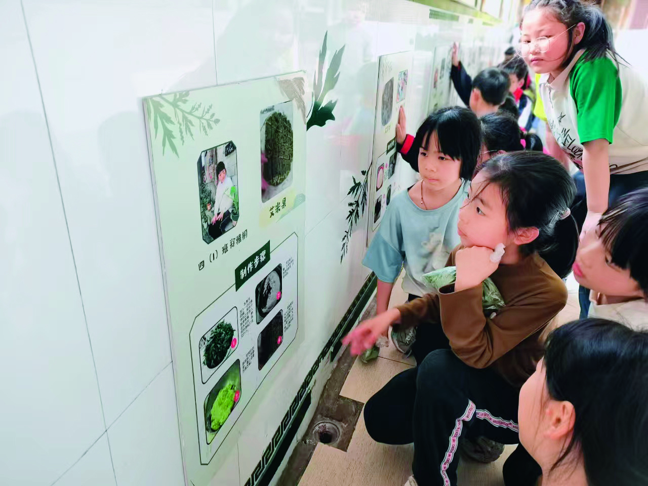 利用校园廊道空间,打造中医药文化长廊,打破传统课堂边界,实现“课程展示、成果呈现、交流学习”一体化,涵养学生自主乐学、交流共进、浸润传承的人文素养与道德品质。校园长廊贴合学生认知特点分区展示:课程缘起与师生探究历程、中医药基础课程与特色课程体系、学生研究成果;设置中医药书籍角,实行“每月一更换”机制,确保书籍的新鲜度与多样性,方便学生课间随手翻阅、自主学习,让中医药文化浸润日常。