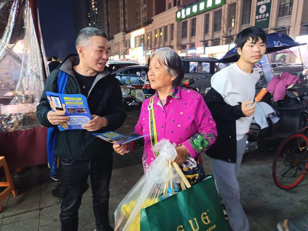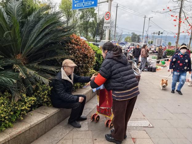 点位建好了,如何让更多居民知晓?行动小组同步在小区老年人聚集的区域进行宣传,发放宣传单、倾身细细讲解等。