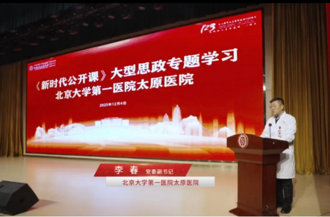 《中华英才》半月刊网山西讯(张振华 李旭)民生无小事,健康大于天。健康中国战略的纵深推进,既是守护亿万群众幸福福祉的核心支撑,更是夯实基层治理根基、践行以人民为中心发展思想的关键抓手。党的二十届四中全会锚定“十五五”战略定位,为民生事业高质量发展与思政教育创新提质擘画清晰蓝图、凝聚奋进共识。12月4日,《中华英才》半月刊社融媒体中心山西运营部与北京大学第一医院太原医院(下称“北大医院太原医院”)携手举办的“感悟思想伟力,凝聚奋进力量”新时代公开课,在该院汾东院区隆重开讲。