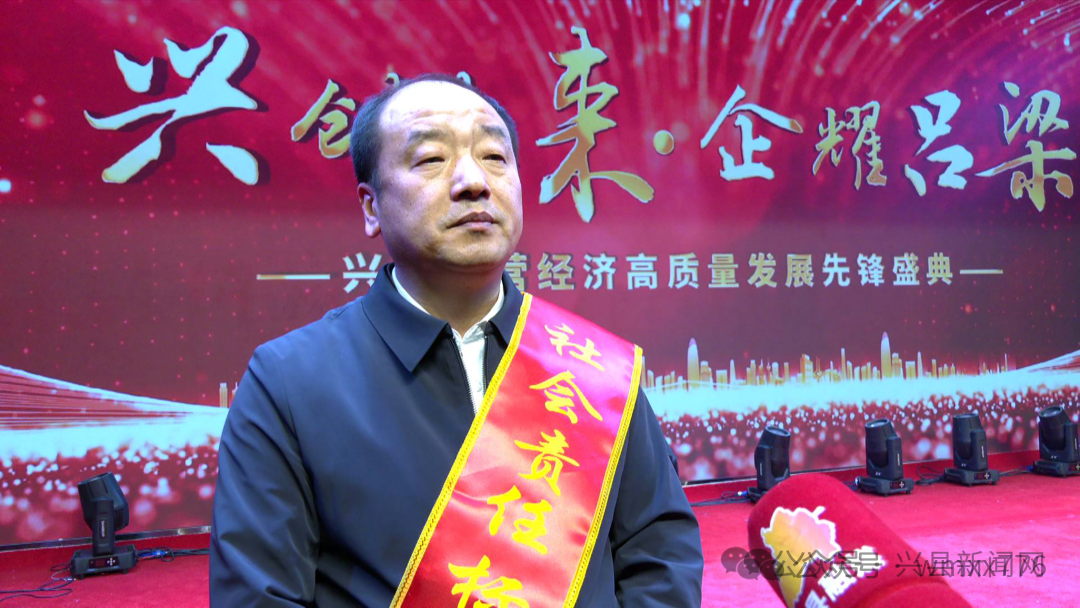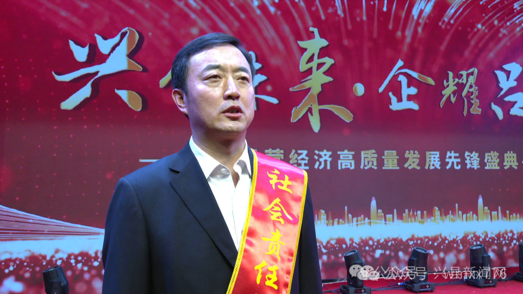 兴县东鑫煤炭洗选有限公司董事长 杨燕斌:在这次民营经济高质量发展先锋盛典上,非常荣幸获得“社会责任标杆企业”这份荣誉,我们深切感受到各级部门对民营企业的重视与关怀。未来,我们将坚守安全底线,持续推进绿色智能洗选,为县域经济高质量发展贡献更大力量。