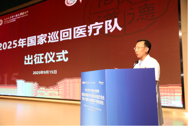 《中华英才》半月刊网山西讯(张振华)9月15日,北京大学第一医院(简称“北大医院”)国家巡回医疗队出征仪式在北大医院太原医院汾东院区尚德大礼堂举行。在北大医院建院110周年、北大医院太原医院建院123周年的历史节点,此次出征不仅是对百年医脉的传承,更是贯彻落实国家深化医药卫生体制改革、推动优质医疗资源扩容下沉的生动实践。
