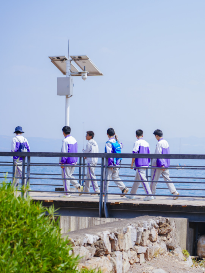 休息调整后,同学们踏上抚仙湖时光栈道,从红沙滩帆船体验中心出发,途经抚海湾湿地公园、大河口,最终抵达望海公园,全程4.5公里。湖风轻拂,碧波万顷。同学们一边观察湿地生态,一边欣赏自然风光。