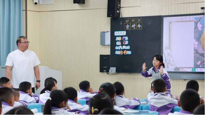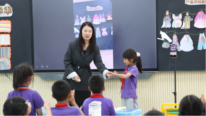 颜锡英老师执教三年级下册《元日》。颜老师课前布置学生查找春节习俗资料,课中以“传统文化小达人”为任务驱动,在多样诵读中串联现代贴春联、放鞭炮等年俗,实现古今节日文化的对比衔接,让学生了解传统习俗的演变,感受中华优秀传统文化的魅力。