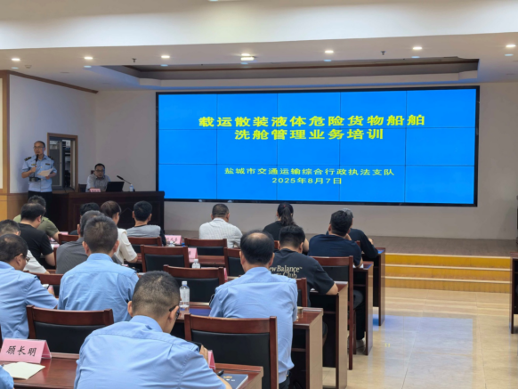 为贯彻落实《船舶载运危险货物安全监督管理规定》等相关要求,全面规范和加强载运散装液体危险货物船舶洗舱管理,8月7日,江苏省盐城市交通运输综合行政执法支队举办载运散装液体危险货物船舶洗舱管理业务培训。
