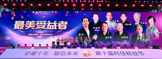 《中华英才》半月刊网讯(本刊记者雷宁伟 姜存辉) 当《牡丹之歌》的悠扬旋律在辽宁沈阳国际会展中心响起,广东双骏生物科技有限公司828第十届科技粉丝节正式启幕。这场以“梦耀十年 智启未来”为主题的盛会,既是科技与艺术交织的盛宴,更是献给“健康中国”的十年答卷——百万网友共赴“云”端之约,与现场参会者一同见证国产科研力量的高光时刻,触摸科技创新赋能全民健康的脉动。
