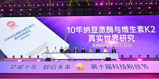 随着《10年纳豆激酶与维生素K2真实世界研究深度解析报告(2015-2025)》发布,现场掌声雷动。这份历时十载、汇聚70名权威专家与293位健康专员智慧,收录8924例应用者数据的成果,成为全场焦点。“我国正面临人口老龄化与慢性病高发的双重挑战,心脑血管疾病、骨质疏松已成为国民健康寿命的‘拦路虎’。”泰山学者、沈阳药科大学教授徐峰解读时强调,研究实证显示,纳豆激酶改善血液循环、降低血栓风险的持续效能,维生素K2“钙精准沉积”的独特作用,为“健康中国”建设中的难点提供了天然解决方案。更珍贵的是,现场参与者的健康反馈与线上互动数据,让研究凝结成极具“中国特色”的鲜活样本——这些扎根本土人群的数据,填补了相关领域真实世界研究空白,让科研成果接上“地气”,成为支撑个性化健康管理的“民生底气”,生动践行了国家“以科技创新回应群众健康需求”的部署。