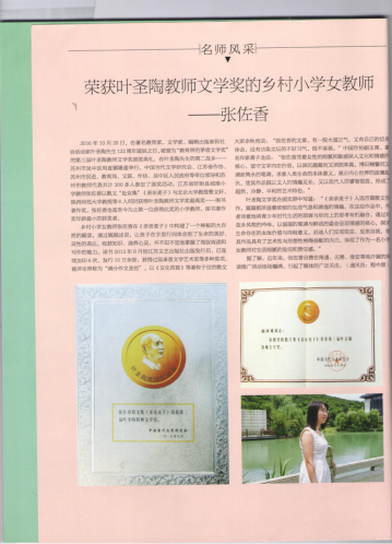 图为教育部主管的《中国教师》封二报道张佐香荣获叶圣陶教师文学奖主奖(最高奖)