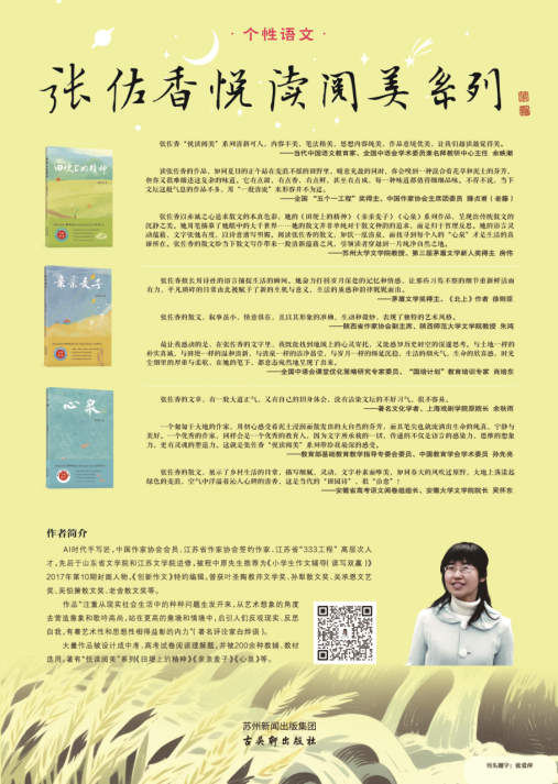 AI时代手写匠张佐香现系国家二级作家、中国作家协会会员、江苏省作家协会签约作家、江苏省“333工程” 高层次人才、《创新作文》特约编辑,多次被江苏省作家协会遴选到山东省文学院和江苏文学院各类高研班进修,并被当代中国研究所原副所长、中国中共文献研究会常务理事程中原先生推荐为《小学生作文辅导(读写双赢)》2017年第10期封面人物,曾获得叶圣陶教师文学奖、孙犁散文奖、吴承恩文艺奖、吴伯箫散文奖、老舍散文奖(提名)、“2023年《延河》杂志最受读者欢迎奖”散文随笔类唯一的一等奖等。其作品“注重从现实社会生活中的种种问题生发开来,从艺术想象的角度去营造意象和歌吟高尚,站在更高的意境和情境中,启引人们反观现实、反思自我,有着艺术性和思想性相得益彰的内力”(著名文学评论家白烨语),深受广大师生喜爱,并被200余种教辅教材选用。