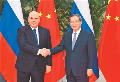 李强表示,中俄是相互信赖的好邻居、好伙伴。今年是中国人民抗日战争、苏联卫国战争暨世界反法西斯战争胜利80周年,两国支持彼此举行隆重纪念活动,进一步深化了中俄友谊。习近平主席和普京总统年内两度会晤,引领中俄关系破浪前行、高水平发展。当前国际形势深刻变化,中方愿同俄方以两国元首重要共识为根本遵循,加强战略沟通,深化各领域协作,更好维护共同的发展和安全利益。上个月,中共二十届四中全会审议通过了“十五五”规划建议,为未来5年乃至更长一段时期的中国发展擘画了蓝图。中方愿同俄方坚定相互支持,密切高层交往,加强发展战略对接,拓展各领域合作,不断推进中俄新时代全面战略协作伙伴关系,在实现现代化的道路上继续携手前行。