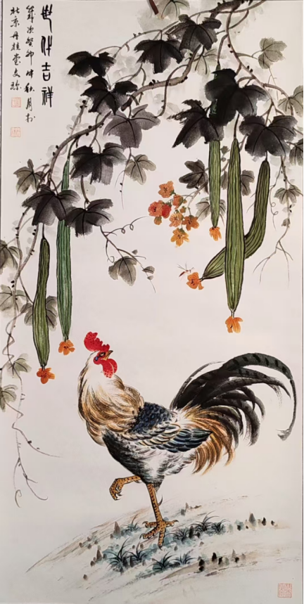 看其画必然发现刘文珍先生作画笔触精湛,写意花鸟每落一笔都饱含着对物象的精准把握与独特文化理解,兰花的生态美与君子风度一挥而就,鸡寓五德的文化符号得以生动的具像化,这些作品都基于线条流畅且富有变化的勾勒塑造,或刚劲有力,轻柔细腻,灵活多变,良皴优擦,将天地万类的形态生动地展现出来,尽显笔法的无穷魅力。