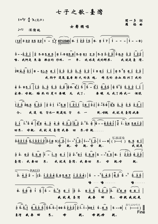 爱国诗人闻一多 (1899-1946),把祖国的台湾比喻为“东海的一串珍珠”。1895年,台湾及附属岛屿被《马关条约》割让给日本。1925年,闻一多在海外留学期间创作了组诗《七子之歌》,用拟人的手法把中国的澳门、香港、台湾等七个被割让、被租借的地方比作祖国母亲被强盗抢走的孩子。闻一多的作品,激励着中华民族为祖国统一而不懈奋斗。