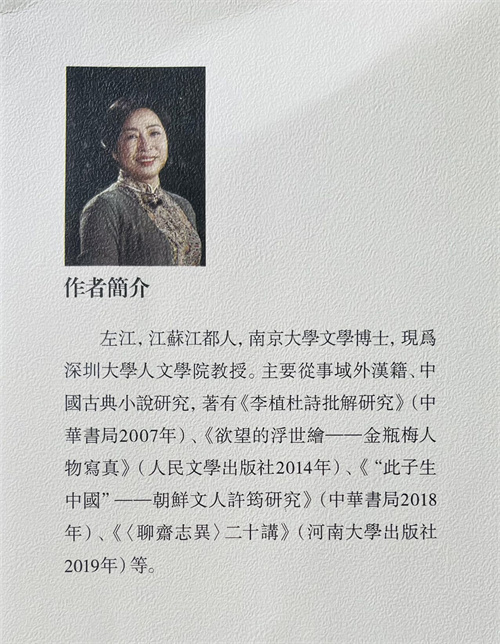 左江,南京大学古代文学博士,深圳大学人文学院教授、东亚汉籍研究所所长,长期从事域外汉籍及中国古典小说研究。主持建设《品读聊斋》(国家级线上一流本科课程)、《金瓶梅人物写真》(广东省线上一流本科课程)、《中国古代文学导论》(深圳大学研究生“金课”)等多门优质课程。发表论文数十篇,出版著作有《李植杜诗批解研究》《欲望的浮世绘——金瓶梅人物写真》《“此子生中国”——朝鲜文人许筠研究》《〈聊斋志异〉二十讲》《高丽朝鲜时代杜甫评论资料汇编》《杜诗与朝鲜时代汉文学》等。其中《高丽朝鲜时代杜甫评论资料汇编》获深圳市哲学社会科学优秀成果奖。
