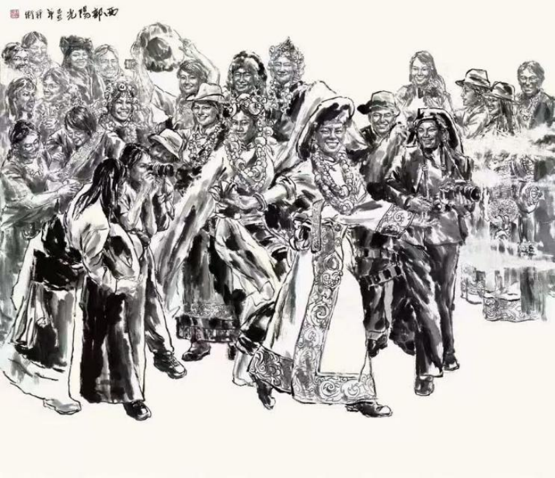 同时,他的创作始终与时代同频共振。《航天英雄翟志刚》这幅作品,聚焦中国航天事业的高光时刻,以细腻的笔触刻画了航天英雄与各族群众互动的温馨场景。画面色彩明快,人物神态生动,将航天英雄的荣耀与民众的自豪之情巧妙融合,生动展现了时代的伟大成就,使作品具有强烈的时代印记与精神感召力。